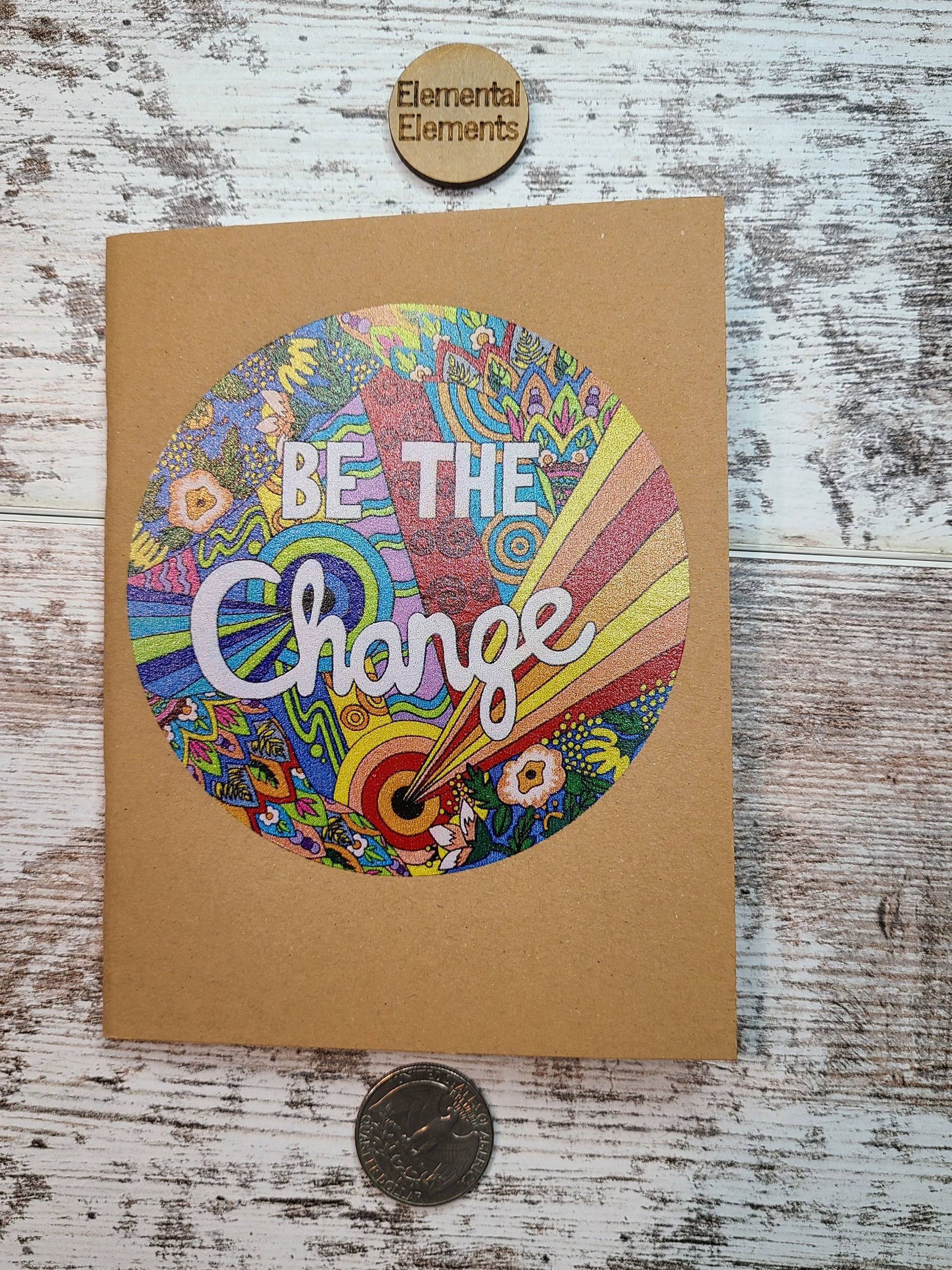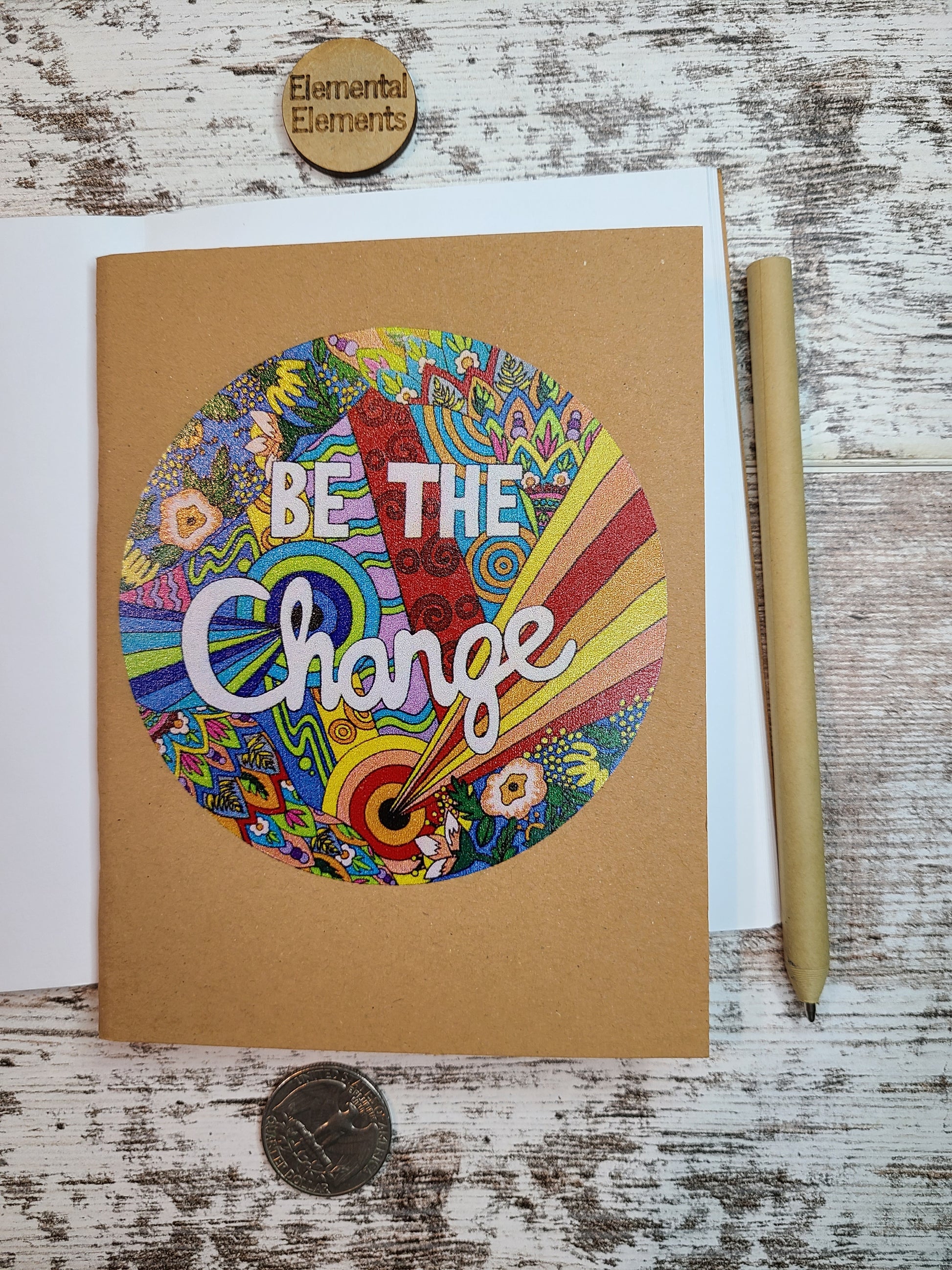 Our Be the Change Journal Notebook depicts original art by Arianna Enriquez. Featuring a gorgeous array of varying colors and shapes perfectly coming together to make an absolutely stunning piece that inspires us to Be the Change.
