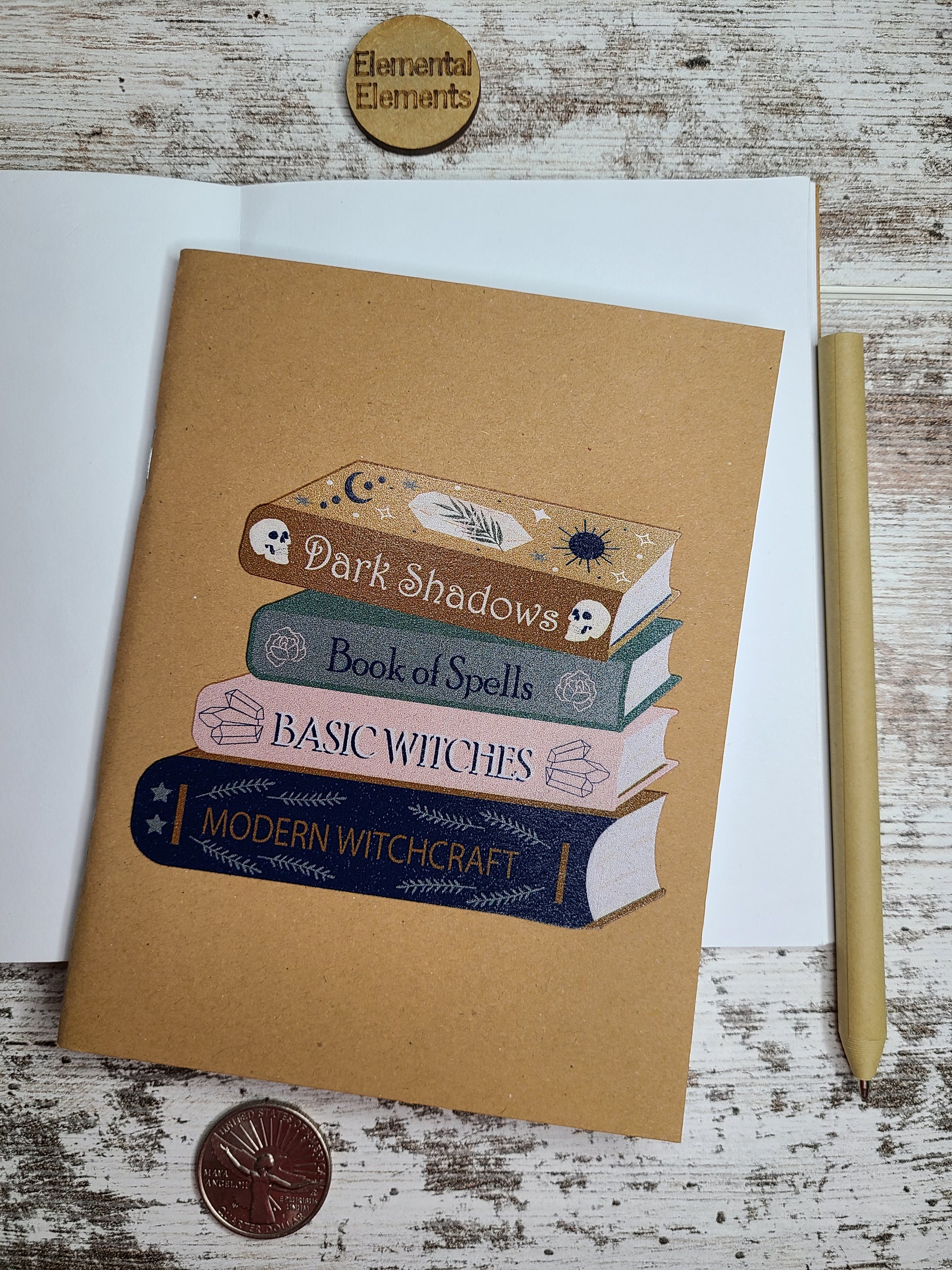 Write your spells down in our Spell books Journal Notebook. Dark Shadows, Book of Spells, Basic Witches, and Modern Witchcraft adorn the cover, while inside our 4.25 x 5.5 witchy journal there are 48 blank pages with 120 GSM paper.