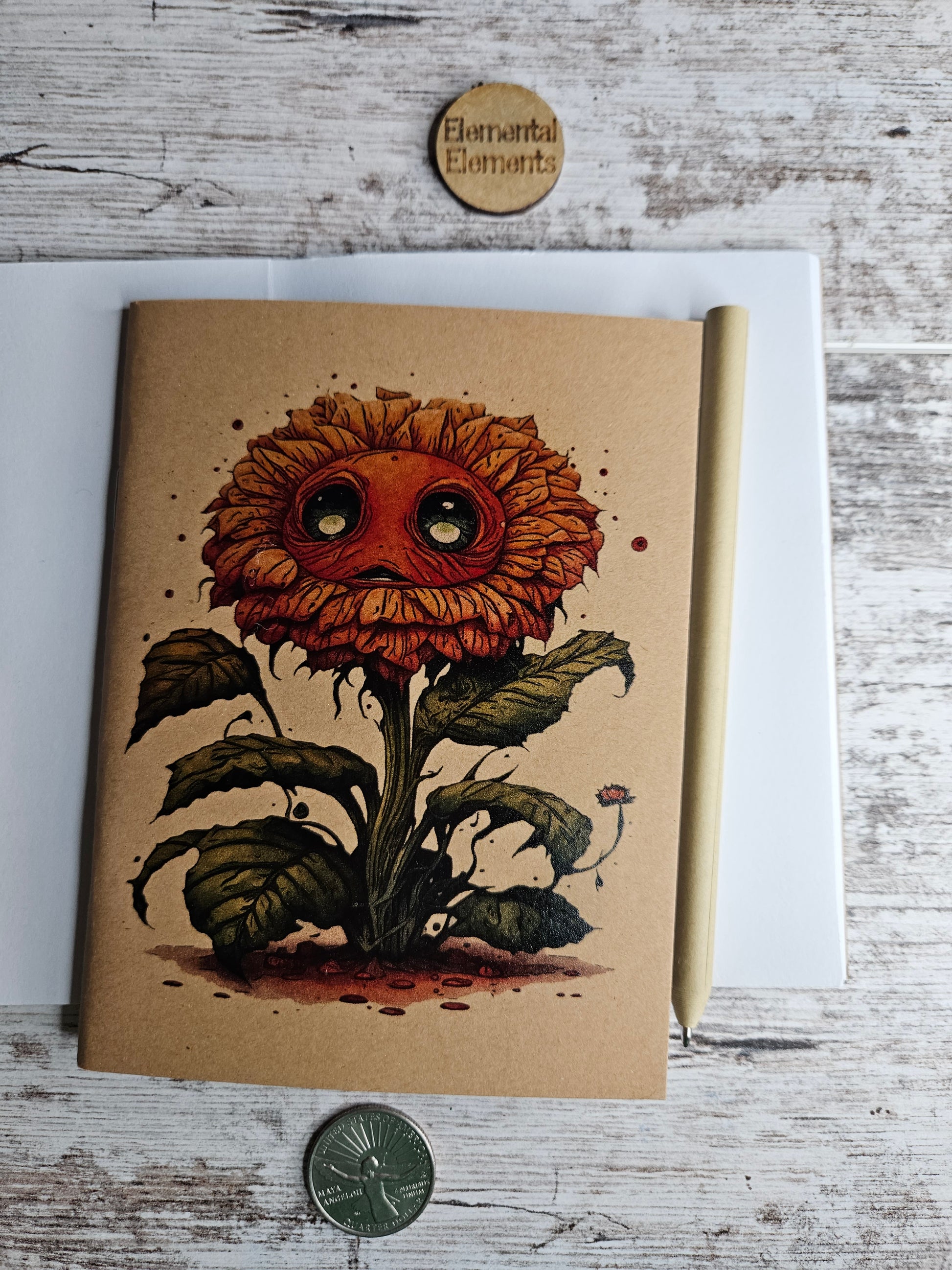 Each of our journals are 4.25 x 5.5 in. with 48 blank pages and 120 GSM paper. Our art will not flake or peel off.